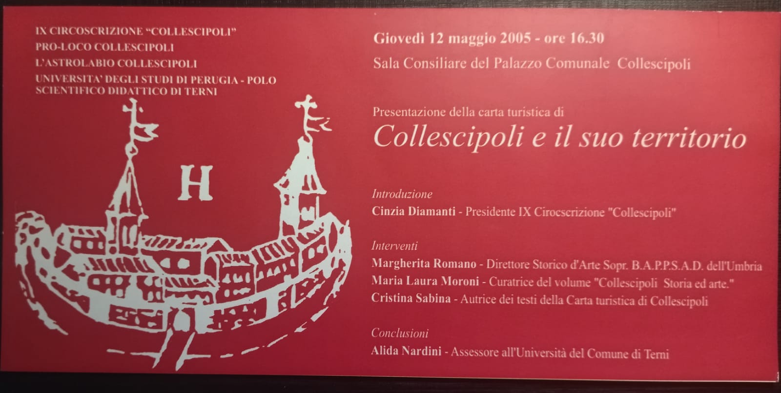 In corso l'aggiornamento e realizzazione della nuova carta turistica di Collescipoli, presentata nel maggio 2005, ha visto un profondo cambiamento del borgo nei 20 anni trascorsi.